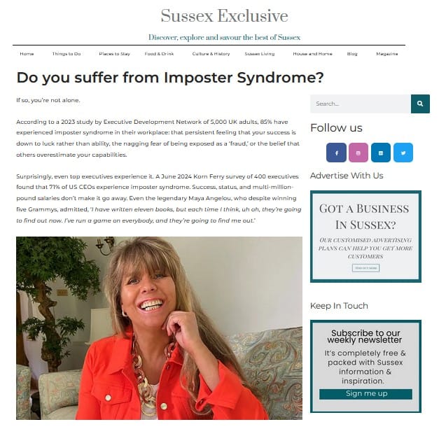 Sharon Bolt is an official Business Columnist for Sussex Exclusive - a multi-million digital publication with an audited multi-million readership. In her column, she shares insights on mindset, strategic visibility and modern PR, helping leaders refine their voice and develop reputations recognised and trusted by the media.